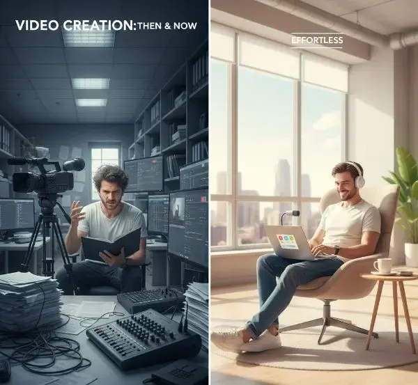 Picture this: you’ve got your favorite cozy corner, a cup of tea, and an idea for a training video. Instead of calling production companies and waiting weeks, you just… tell an AI what you want. And boom – professional video content appears like magic.